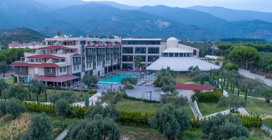 Colossae Thermal & Spa Hotel 1990 yılında kapılarını açan Colossae Thermal & Spa Hotel, Pamukkale bölgesinin ilk 5 yıldızlı oteli olma özelliğinin yanı sıra bölgenin tek Yeşil Yıldız sertifikalı tesisi olarak öne çıkmaktadır. Pamukkale’nin dünyaca ünlü travertenleri ile antik çağın termal kenti Hierapolis’in hemen yanı başında, 40 dönümlük geniş bir arazi üzerine kurulu olan tesis, ismini Frigya’nın kadim yerleşimlerinden biri olan Colossae antik şehrinden almaktadır. Tarih ve doğanın kucaklaştığı bu özel noktada, misafirlerine hem kültürel bir zenginlik hem de şifa dolu bir tatil ortamı sunmaktadır. Huzur ve yenilenme arayanlar için ideal bir adres olan otel, doğa ile uyumlu özgün mimarisi ve konfor odaklı 310 odasıyla toplamda 620 yatak kapasitesine sahiptir. Tesisin en dikkat çekici bölümlerinden biri olan 2000 metrekarelik modern Spa & Wellness merkezi, şık tasarımıyla misafirlerine bütünsel bir arınma deneyimi yaşatır. Açık ve kapalı alanlarda kullanım imkanı sağlayan termal havuzlar, yüzyıllardır süregelen kür geleneğini günümüzün konforuyla birleştirerek bedensel ve ruhsal bir tazelenme vadeder. Colossae Thermal & Spa, tatilin yanı sıra iş dünyasının ve büyük organizasyonların da bölgedeki en önemli merkezlerinden biri konumundadır. Farklı kapasitelerde tasarlanmış 14 adet toplantı salonuyla kongre turizmine yön veren tesis, eğlence alanları ve ferah atmosferiyle çok yönlü bir hizmet anlayışı benimser. Kurulduğu ilk günden bu yana değerlerinden ödün vermeden, sürekli yenilenen yapısıyla referans bir işletme olmayı sürdüren otel, misafirlerini Pamukkale’nin büyüleyici atmosferinde ağırlamaya devam etmektedir.