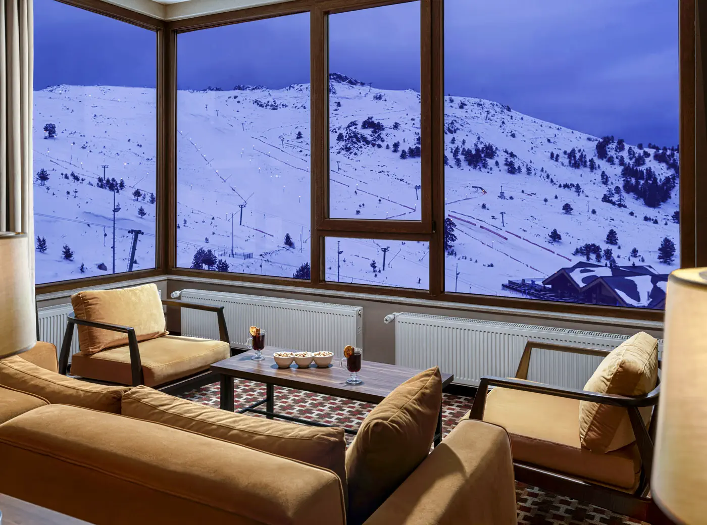 2 odalı ( 1 adet french bed yatak odası 1 adet twin yatak odası), Pist ve Orman Manzaralı, Mini Bar, Merkezi Isıtma,220 V. Elektrik, Zemin Halı Kaplama